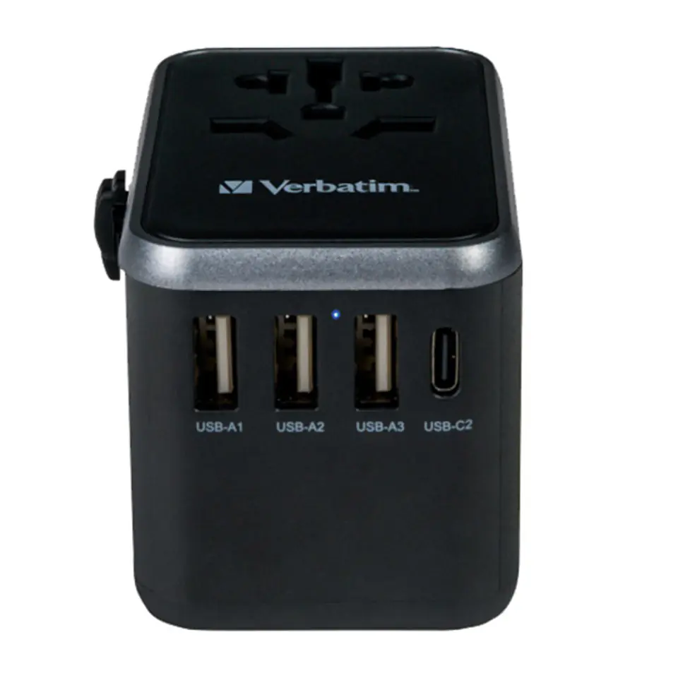 Uniwersalnego adaptera podróżnego Verbatim można używać w ponad 180 krajach – zabierz go ze sobą, a nigdy nie braknie Ci mocy. Ten adapter wtyczek typu globalny-globalny umożliwia podłączanie urządzeń do dowolnego lokalnego źródła zasilania na całym świecie. Dzięki niemu możesz spokojnie ładować swoje urządzenia wymagające zasilania, takie jak laptopy i akumulatory do aparatów. Porty USB-C i USB-A u dołu umożliwiają ładowanie wszystkich urządzeń USB, w tym smartfonów, głośników Bluetooth, tabletów, powerbanków i czytników e-booków.