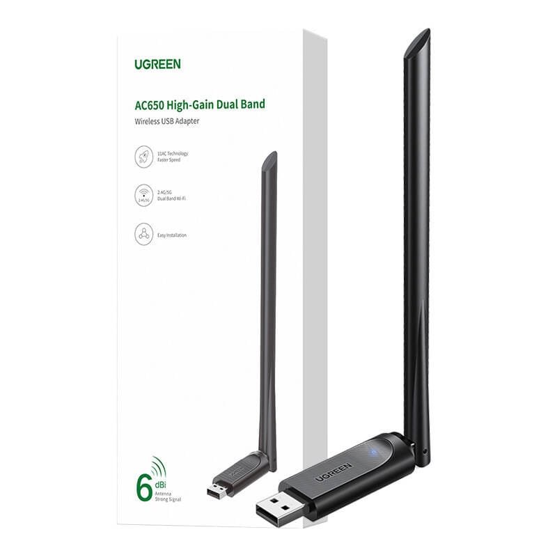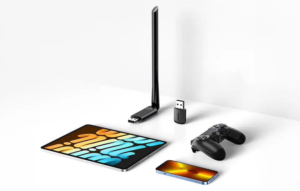 Adapter USB UGREEN pozwala podłączyć komputer do sieci WiFi lub stworzyć hotspota w domu. Oferuje wsparcie dla połączeń 2.4 GHz i 5 GHz. Wyróżnia się lekką, kompaktową konstrukcją i idealnie sprawdzi się zarówno jako nadajnik, jak i odbiornik sygnału.