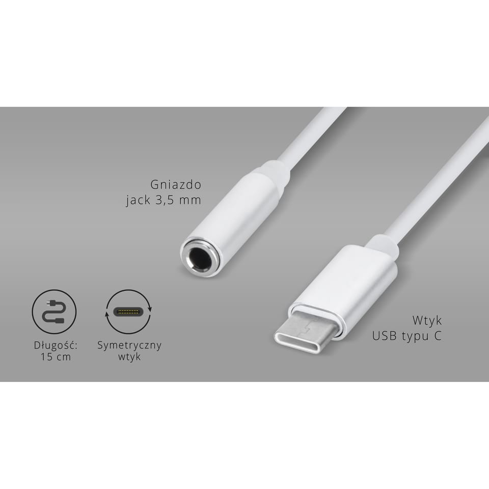 Zastosowanie: Przejściówka, która pozwoli m.in. podłączyć słuchawki wyposażone w standardowe złącze jack 3,5 mm do smartfona, który posiada tylko port ładowania USB typu C.