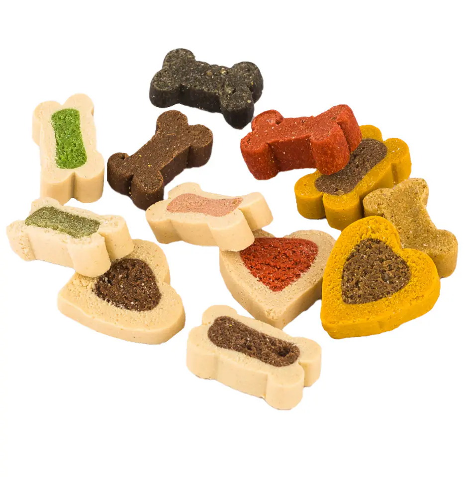 Skład: zboża, mięso i produkty pochodzenia zwierzęcego, ryż, produkty roślinne, oleje, tłuszcze, konserwanty, barwniki (wołowina 5%, jagnięcina 5%, łosoś 5%, drób 5%)
