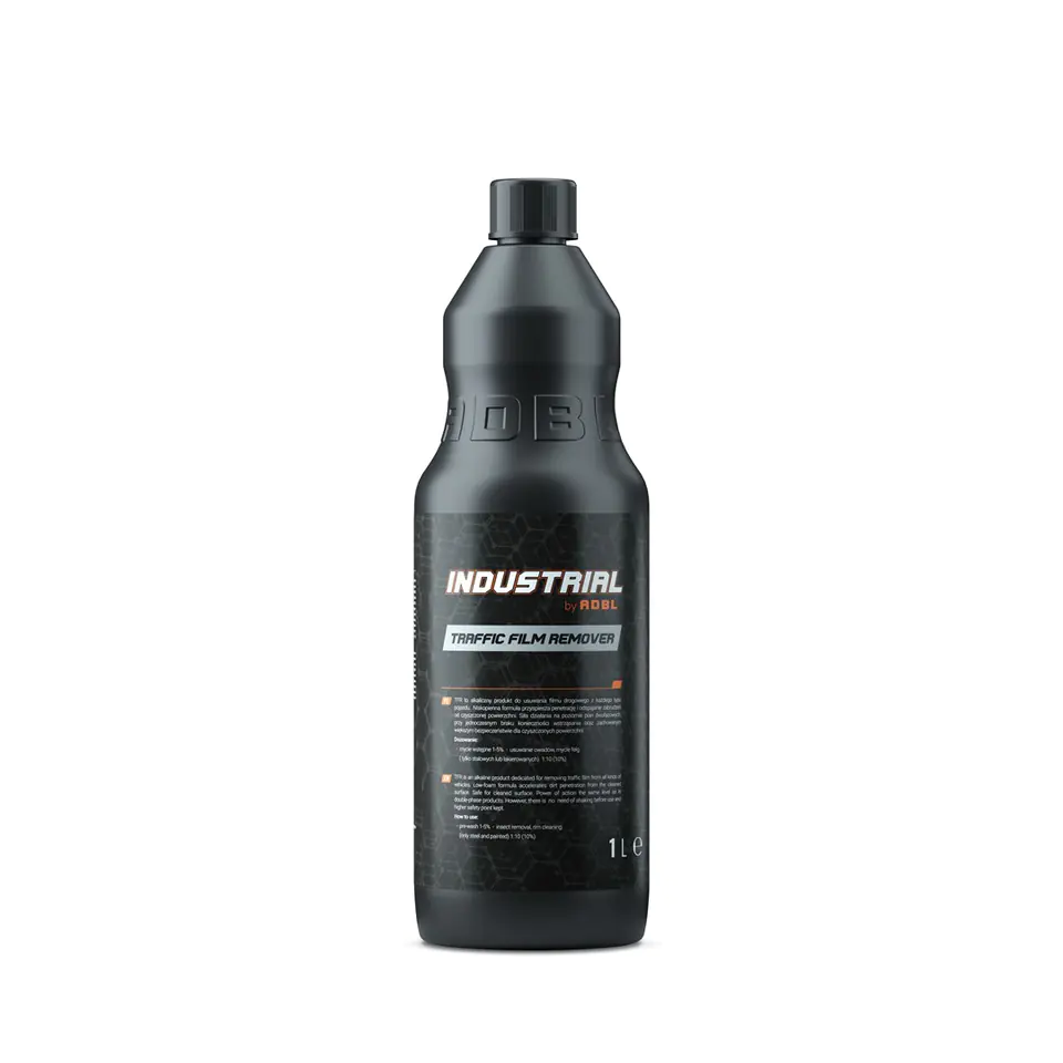 ADBL Industrial Traffic Film Remover – to alkaliczny produkt do usuwania filmu drogowego z każdego typu pojazdu. Niskopienna formuła przyspiesza penetrację i odspajanie zabrudzeń od czyszczonej powierzchni. Siła działania na poziomie pian dwufazowych przy jednoczesnym braku konieczności wstrząsania oraz zachowaniu większego bezpieczeństwa czyszczonych powierzchni.