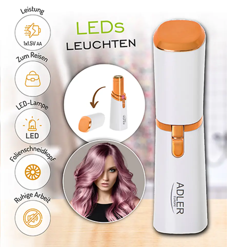 - Lampka LED podświetla miejsce depilacji