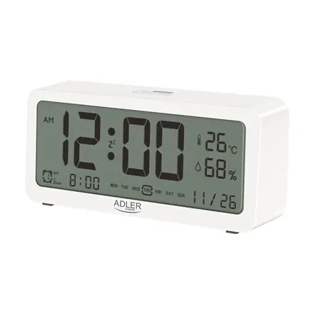 Budzik AD 1195 to urządzenie o wielu przydatnych funkcjach, które możesz wybrać w zależności od swoich potrzeb. Przede wszystkim posiada 3 oddzielne ustawienia godzin alarmów i wyświetla: czas, datę, temperaturę, wilgotność. Dużą zaletą jest czytelny podświetlany wyświetlacz, z którego łatwo odczytasz godzinę i temperaturę. Budzik zasilany jest 2 bateriami AA. Wyświetla: czas, datę, temperaturę, wilgotność.