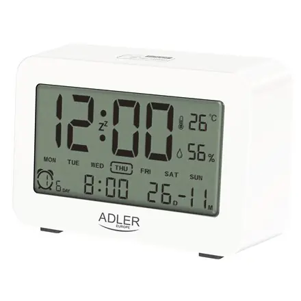 Budzik AD 1196 to urządzenie o wielu przydatnych funkcjach, które możesz wybrać w zależności od swoich potrzeb. Przede wszystkim posiada 3 oddzielne ustawienia godzin alarmów i wyświetla: czas, datę, temperaturę, wilgotność. Dużą zaletą jest czytelny podświetlany wyświetlacz, z którego łatwo odczytasz godzinę i temperaturę. Budzik zasilany jest 2 bateriami AAA. Wyświetla: czas, datę, temperaturę, wilgotność.