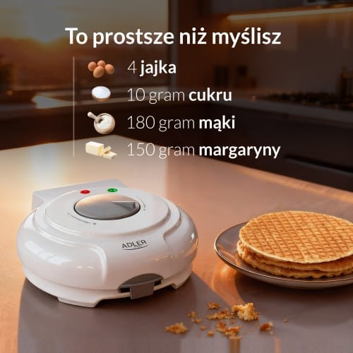 Adler Gofrownica AD 3038 1500 W, Ilość ciastek 1, Stożek lodowy, Biały