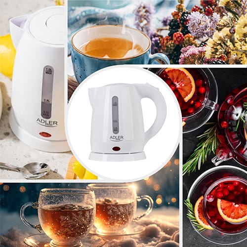Adler Kettle AD 1272 Electric, 1600 W, 1 L, Stainless steel/Polypropylene, 360° rotational base, White