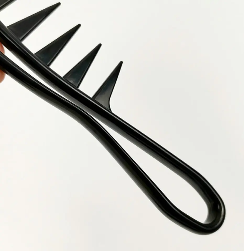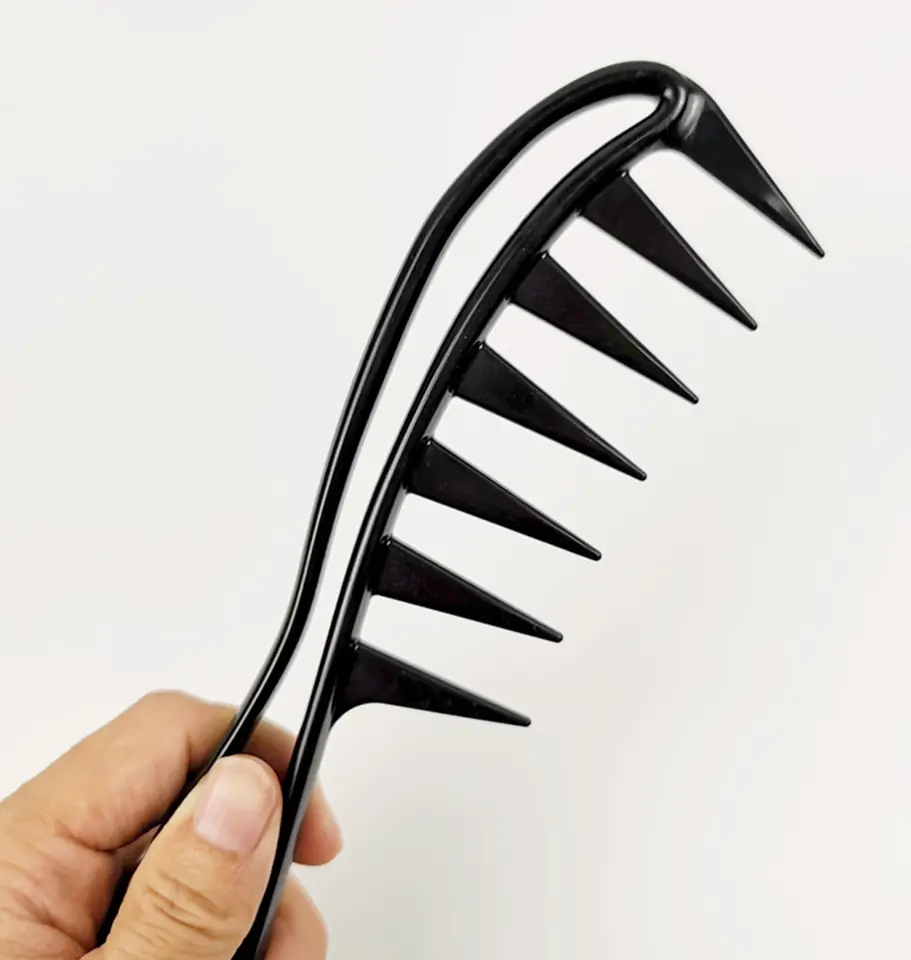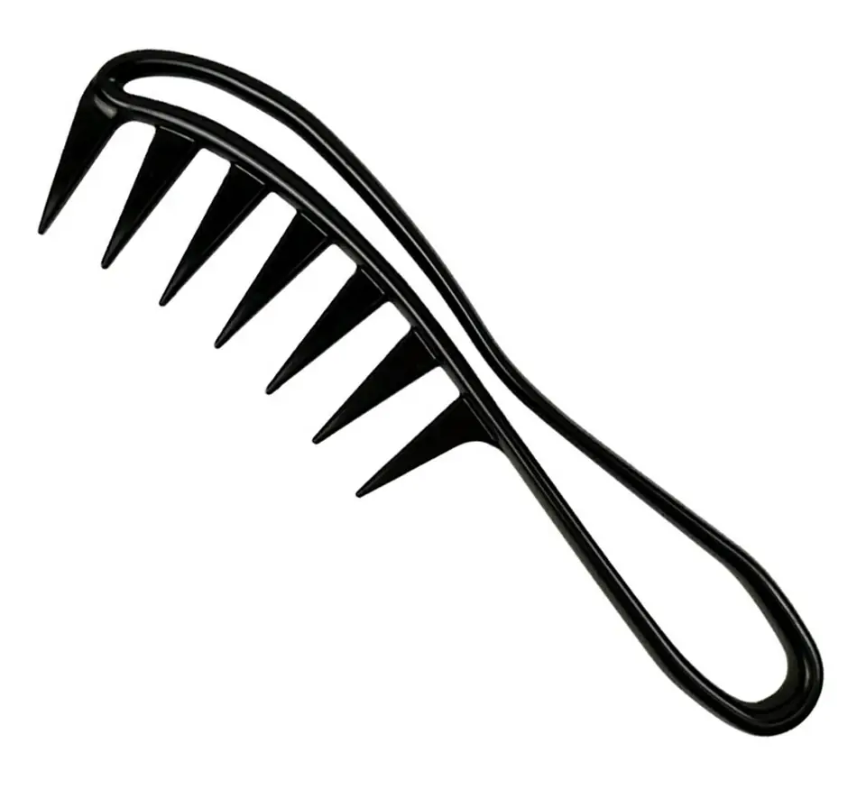 Szeroki grzebień fryzjerski do rozczesywania mokrych włosów podczas strzyżenia. Szeroko rozstawione zęby nie szarpią i nie łamią włosa. Niezbędne narzędzie pracy każdego zakładu fryzjerskiego.