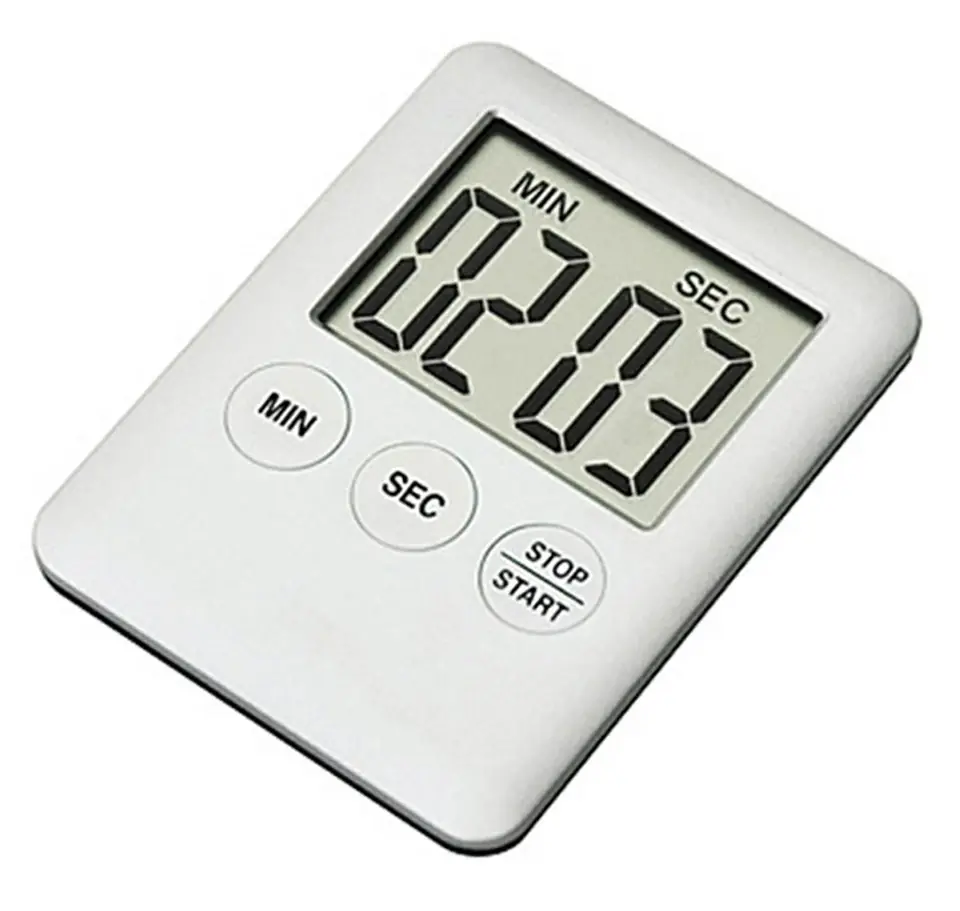 Elektroniczny minutnik kuchenny z magnesem! Zdecydowanie ułatwia przygotowanie potraw w kuchni. Montowany na magnes, możesz go wygodnie przypiąć do lodówki! Duży i czytelny wyświetlacz LCD ułatwia odczytanie pozostałego czasu. Urządzenie posiada pamięć ostatnio ustawionej wartości oraz dźwiękową sygnalizację upływu czasu. Timer wykonany został z solidnego tworzywa sztucznego.