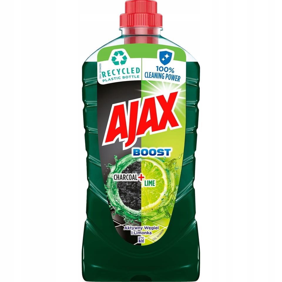 * płyn uniwersalny AJAX BOOST * narzędzie do czyszczenia, które zapewnia kompleksową pielęgnację delikatnych powierzchni, chroniąc je przed uszkodzeniami * dzięki unikalnej formule opartej na sodzie oczyszczonej i cytrynie, ten płyn uniwersalny zapewnia delikatną, a jednocześnie skuteczną ochronę delikatnych powierzchni, jak marmur czy ceramika * już teraz możesz cieszyć się czystością, nie ryzykując uszkodzenia swoich ulubionych powierzchni * w postaci rozcieńczonej doskonale sprawdzi się do mycia dużych powierzchni, zapewniając skuteczne i efektywne czyszczenie * nierozcieńczony płyn skutecznie usuwa nawet najtrudniejsze plamy, pozostawiając powierzchnie lśniące i pachnące świeżością * rodzaje płynów: - CHARCOAL + LIME (formuła: aktywny węgiel + limonka) - przeznaczony do mycia wszystkich powierzchni: podłóg, kafelków, mebli, powierzchni kuchennych i łazienkowych, bez spłukiwania, bez szorowania, bez smug, długotrwały zapach, dogłębne czyszczenie, doskonały połysk, pozostawia warstwę ochronną, rozcieńczony do stosowania na duzych powierzchniach, 93% formuły jest biodegradowalne, rozcieńczony do stosowania na dużych powierzchniach - VINEGAR + LAVENDER - płyn uniwersalny AJAX nadaje się do zmywania wszystkich rodzajów powierzchni, skutecznie zbiera zabrudzenia dzięki technologii Clean Water (TECHNOLOGIA CLEAN WATER - płyn zatrzymuje cząsteczki zanieczyszczeń w wodzie, aby nie dostały się ponownie na mop lub ścierkę), ciesz się blaskiem podłóg i pięknym zapachem w całym domu - BAKING SODA + LEMON - opiera się na naturalnych składnikach, które nie tylko są przyjazne dla środowiska, ale także gwarantują maksymalną skuteczność czyszczenia: - soda oczyszczona - o właściwościach odtłuszczających - świeży, orzeźwiający zapach cytryny * pojemność: 1 L * jednostka sprzedaży 1 sztuka * AJAX to marka należąca do firmy Colgate-Palmolive, zajmująca się produkcją środków czystości - asortyment to produkty do czyszczenia każdej powierzchni: uniwersalne płyny do mycia, płyny do szyb, mleczka i proszki do czyszczenia - charakteryzują się świeżym zapachem i skutecznością