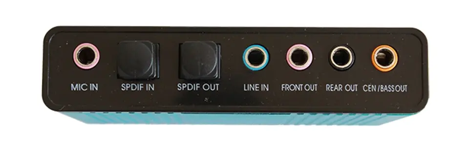 - Wyjścia OUT: Spdif out, Front out, Rear out, CEN/BASS out