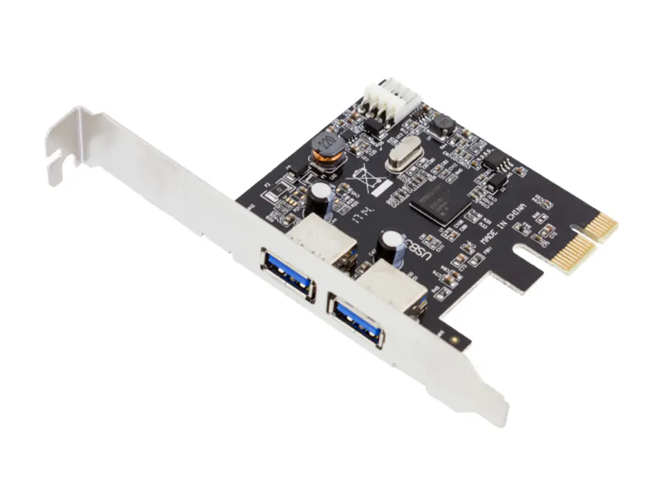 Karta PCI-e dodająca możliwość korzystania z 2 dodatkowych portów USB 3.0. Kontroler jest przeznaczony do modernizacji sprzętu do pracy z najnowszymi urządzeniami wykorzystującymi olbrzymie możliwości portu USB 3.0. W stosunku do 2.0 nowa generacja urządzeń USB 3.0 umożliwia nawet 10-krotnie szybszy transfer danych.