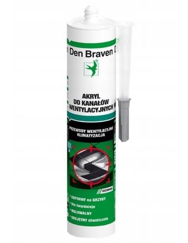 Plastyczno-elastyczny uszczelniacz na bazie wodnej dyspersji akrylowej, wzbogacony o środek grzybobójczy. Przeznaczony do uszczelniania połączeń kanałów wentylacyjnych, klimatyzacyjnych i grzewczych, także w przemyśle spożywczym, farmaceutycznym i gastronomii. Odporny na grzyby, rysy skurczowe i spękania. Posiada doskonałą przyczepność, również do wilgotnych podłoży. Bezpieczny, bez rozpuszczalników, łatwy w profilowaniu i malowaniu po wyschnięciu. Idealny do pomieszczeń sanitarnych i wentylacyjnych.