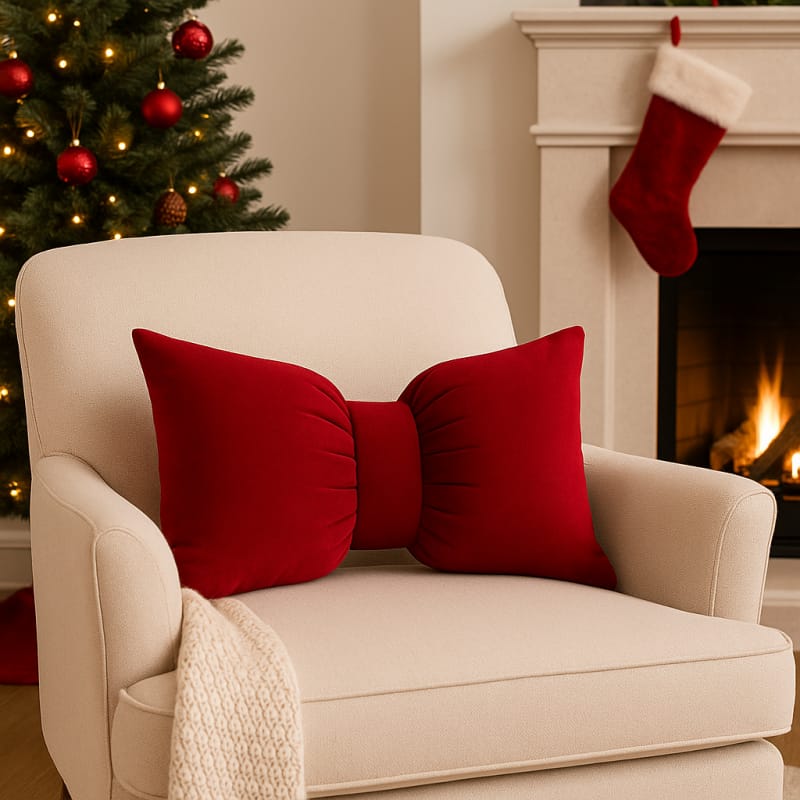 Aksamitna poduszka dekoracyjna, czerwona kokarda duża, 30x50 cm PDS23
