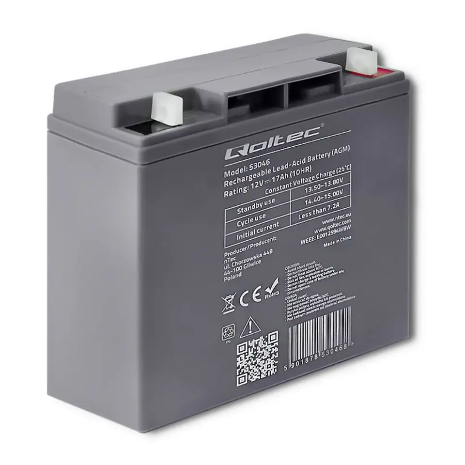 Akumulator Qoltec charakteryzuje się najlepszą jakością oraz wykonaniem z wysokiej jakości materiałów. Zastosowano nowoczesną technologię AGM, w której płynny elektrolit jest umieszczony w separatorze wykonanym z maty szklanej. Cechuje się powolnym procesem rozładowywania, szczelnością oraz wysoką odpornością na temperatury, wibracje i uderzenia.