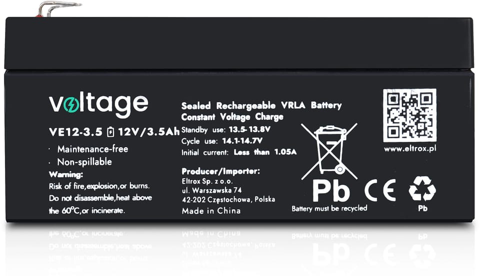 Akumulator AGM Voltage 12V 3,5Ah VE12-3.5 (Żywotność 6-9 lat)