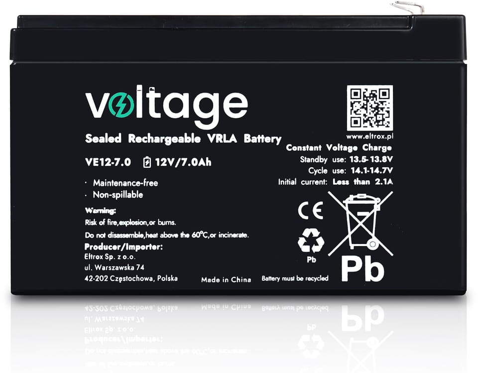 Akumulator AGM Voltage 12V 7Ah VE12-7.0 (Żywotność 6-9 lat)