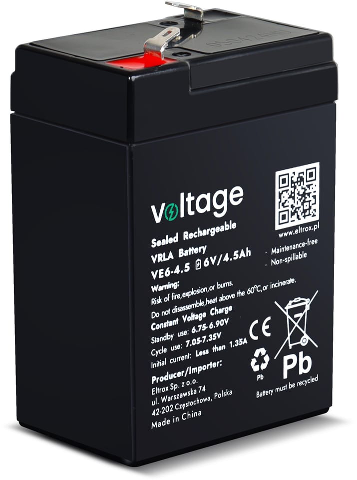 Akumulator AGM Voltage 6V 4,5Ah VE6-4.5 (Żywotność 6-9 lat)