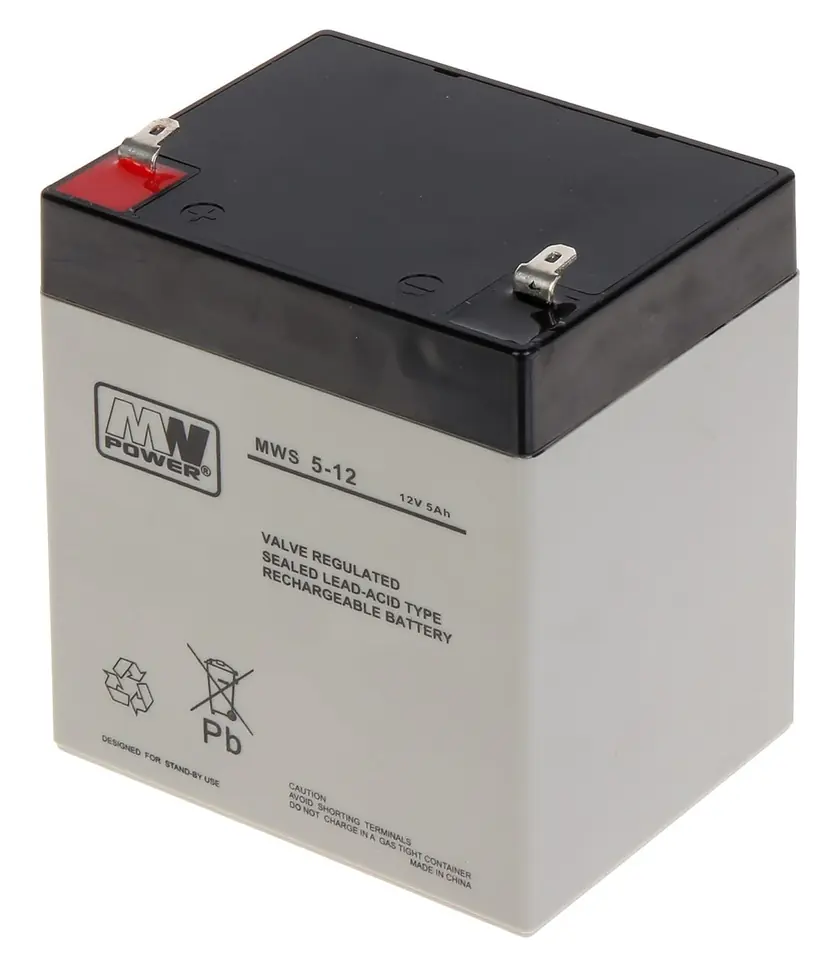 Wysokiej jakości bezobsługowy akumulator żelowy 12V 5Ah.Akumulatory MW Power serii MW-s są dedykowanegłównie do zastosowania w systemach zasilania centralalarmowych, kasach fiskalnych oraz automatyki. Dziękibardzo dobrej relacji jakości do ceny akumulatory MW-szdobyły uznanie wielu klientów. Akumulatory tego typumożna również wykorzystywać jako źródło zasilaniaw urządzeniach przenośnych.Projektowana żywotność wynosi 3-5 lat dla 20-25 C