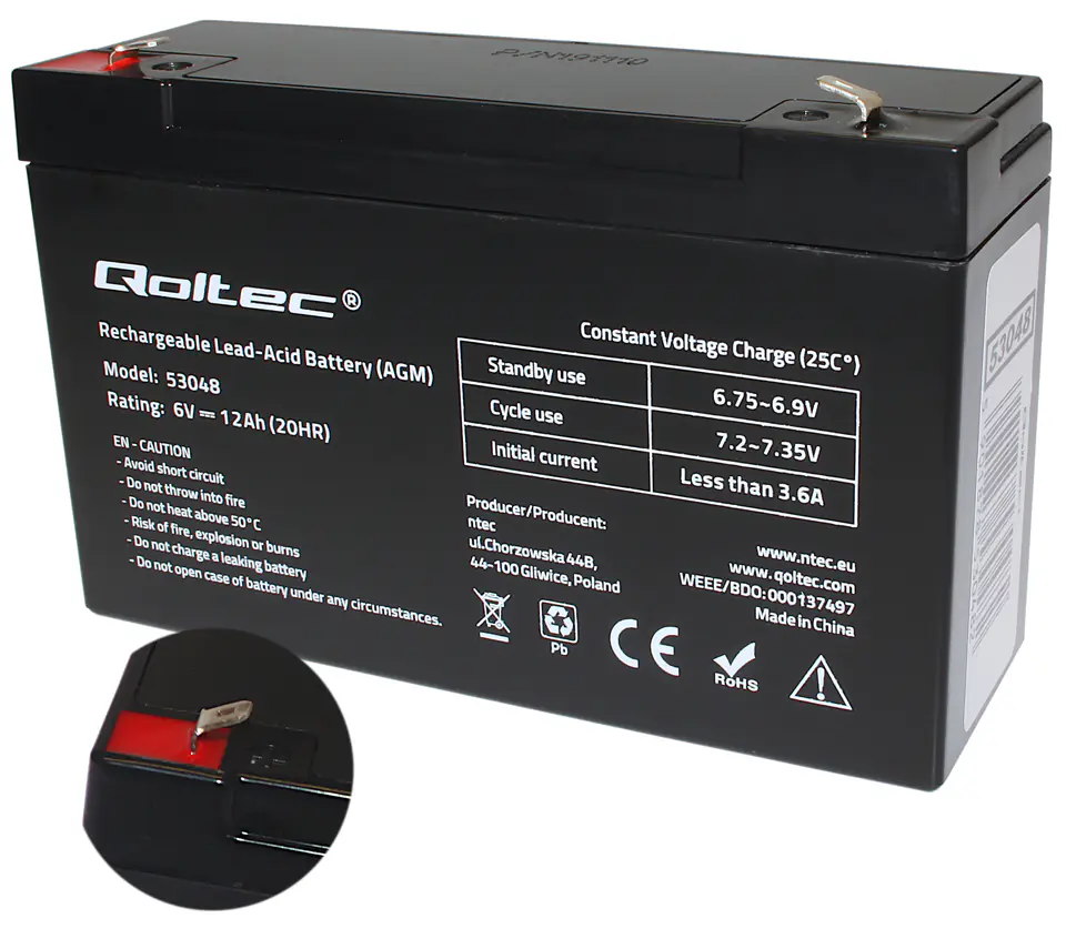 AKUMULATOR ŻELOWY 6V 12Ah + ŁADOWARKA DO POJAZDÓW [B00322]