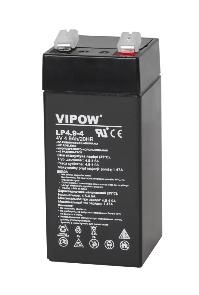 Akumulator żelowy Vipow 4 V / 4,9 Ah Akumulatory żelowe stały się alternatywą dla klasycznych akumulatorów kwasowo-ołowiowych. W przeciwieństwie do tych drugich, modele żelowe są akumulatorami bezobsługowymi. Oznacza to, że nie wymagają one uzupełniania elektrolitu. To, co przemawia na ich korzyść to szczelna obudowa oraz elektrolit w formie żelu. Daje to gwarancję, że nie będzie on wyciekał, dzięki czemu akumulator może być przetrzymywany w dowolnej pozycji i jest bardziej odporny na wstrząsy. Trwałość akumulatora żelowego Jedną z największych zalet akumulatorów żelowych jest ich żywotność. Spośród dostępnych na rynku ten rodzaj charakteryzuje się najdłuższą, bo odpowiednio użytkowany może działać nawet kilkanaście lat. Co ważne, akumulatory żelowe cechuje także większa odporność na zmienne i ekstremalne warunki pogodowe. Automatyczne rozładowanie (25°C) Akumulatory żelowe bez konieczności ładowania mogą być przechowywane nawet przez wiele miesięcy. Ich pojemność spada do: