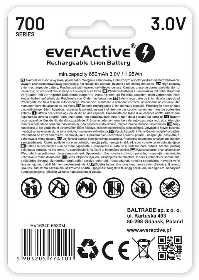 Akumulatorek 16340 / R-CR123 3V everActive 700mAh (1 szt.) z zabezpieczeniem