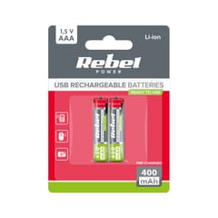 Akumulatorki REBEL AAA,400 mAh, Li-ion, 1,2V, 2szt/bl, R3, gniazdo typ C
