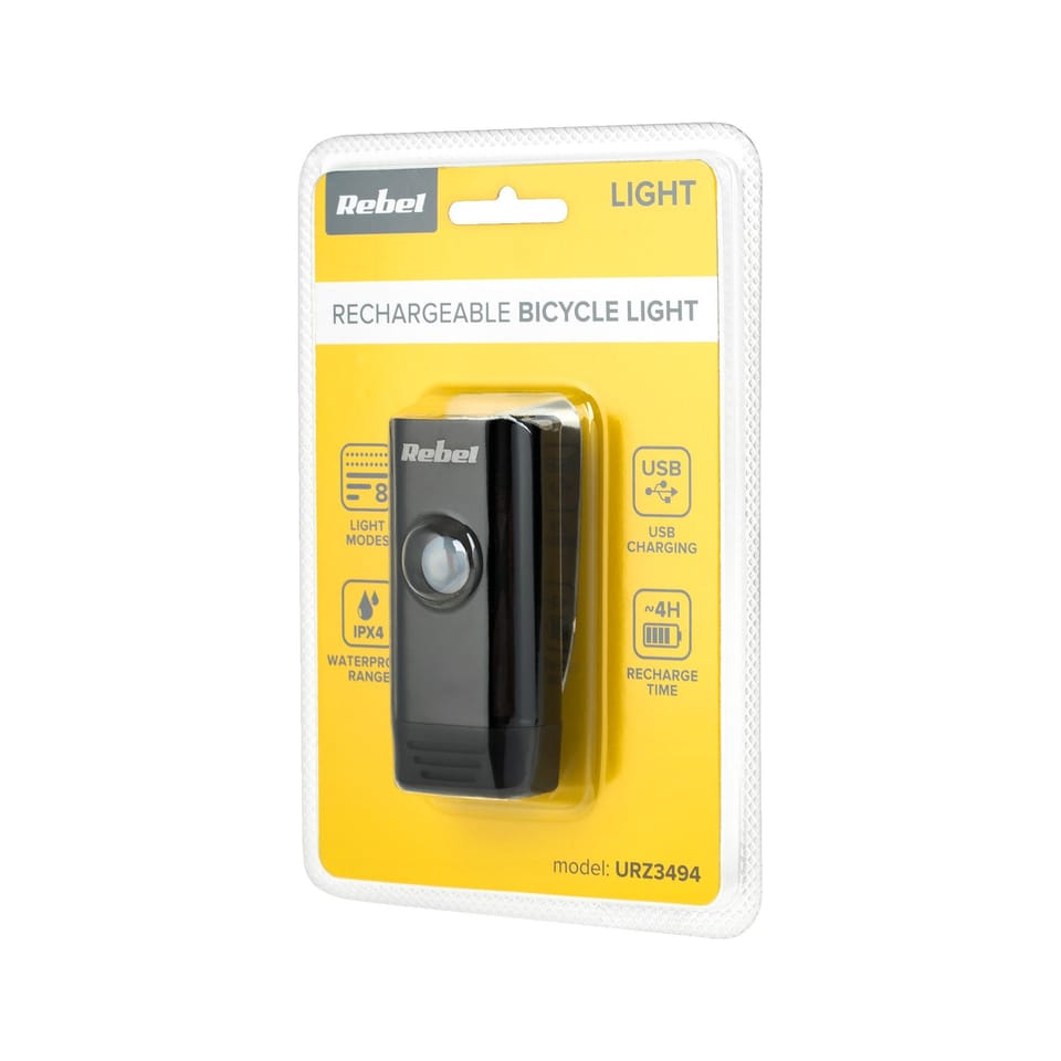 Oświetlenie rowerowe powinno charakteryzować się niezawodnością. Tak jest też w przypadku lampki do roweru Rebel URZ3494! Solidna obudowa jest odporna na uszkodzenia, a dzięki normie IPX4, możesz korzystać ze światła także w czasie lekkiego deszczu.