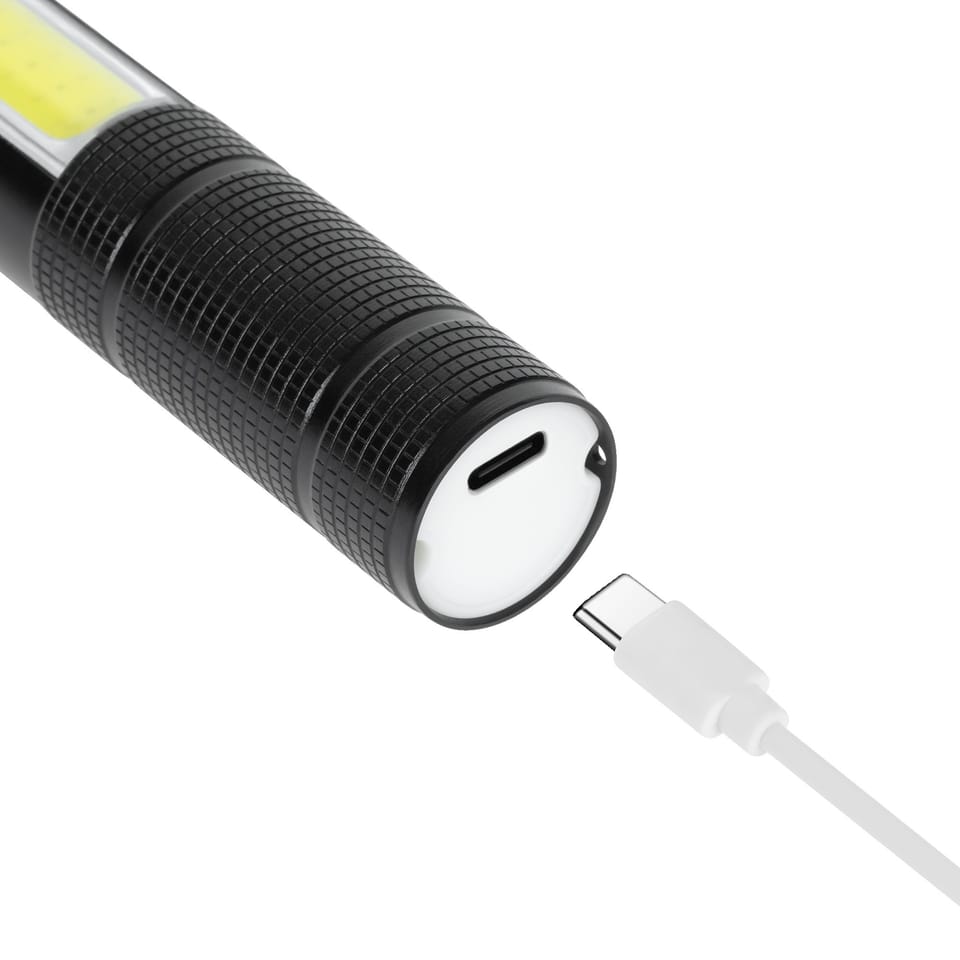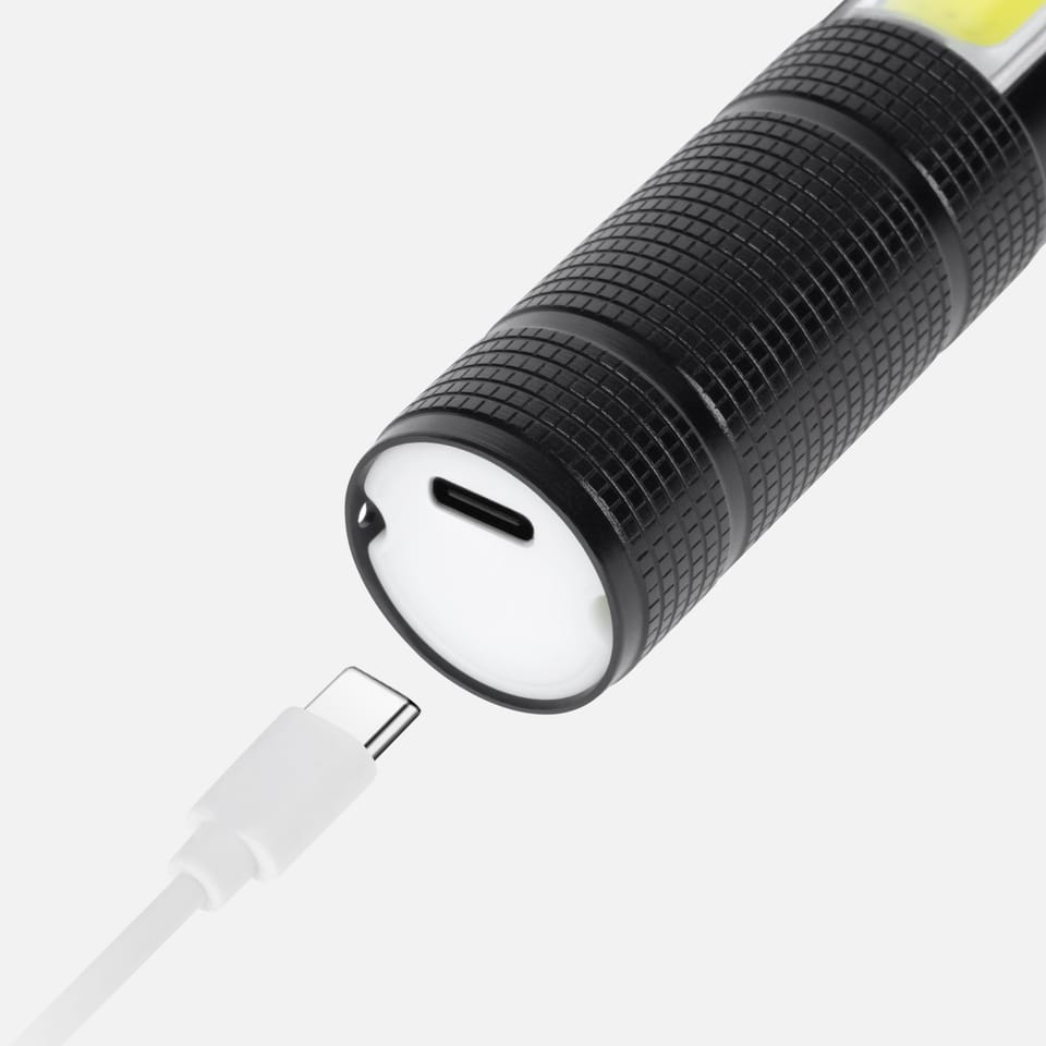 Funkcja latarki, lampy roboczej i czerwonego światła ostrzegawczegoRegulowany zoomWbudowany młotek do szyb, nóż do pasów, magnesMateriał: aluminiumŹródło światła: LED + COBMoc: 2,9 W (przednie światło), 1,5 W(boczne światło)Tryby świecenia: 100%, 50%Zasięg światła: 200 mStrumień światła: 285 lm (przednieświatło), 147 lm (boczne światło)IP20Czas pracy: światło przednie do 3,5 h / światło boczne do 5 hZasilanie: wbudowany akumulator 3,7 V 1200 mAhPort ładowania: USB-CWaga: 171 gWymiary: 166 x 63 x 27 mmW zestawie: kabel micro USB (25 cm), instrukcja obsługi