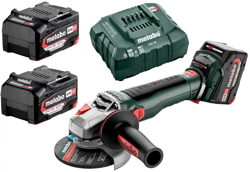 Akumulatorowa szlifierka kątowa Metabo WB 18 LT BL 11-125 Quick 2 x 5,2Ah ładowarka