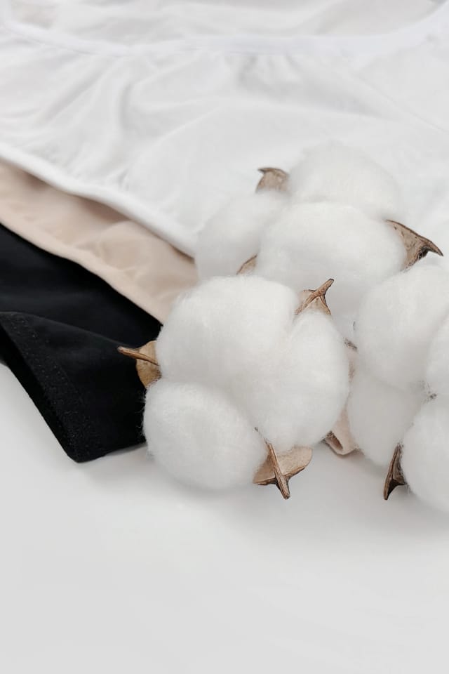 - Trójpak bawełnianych fig o wygodnym, niekrępującym ruchów kroju, idealnym do noszenia na co dzień, także podczas menstruacji,
