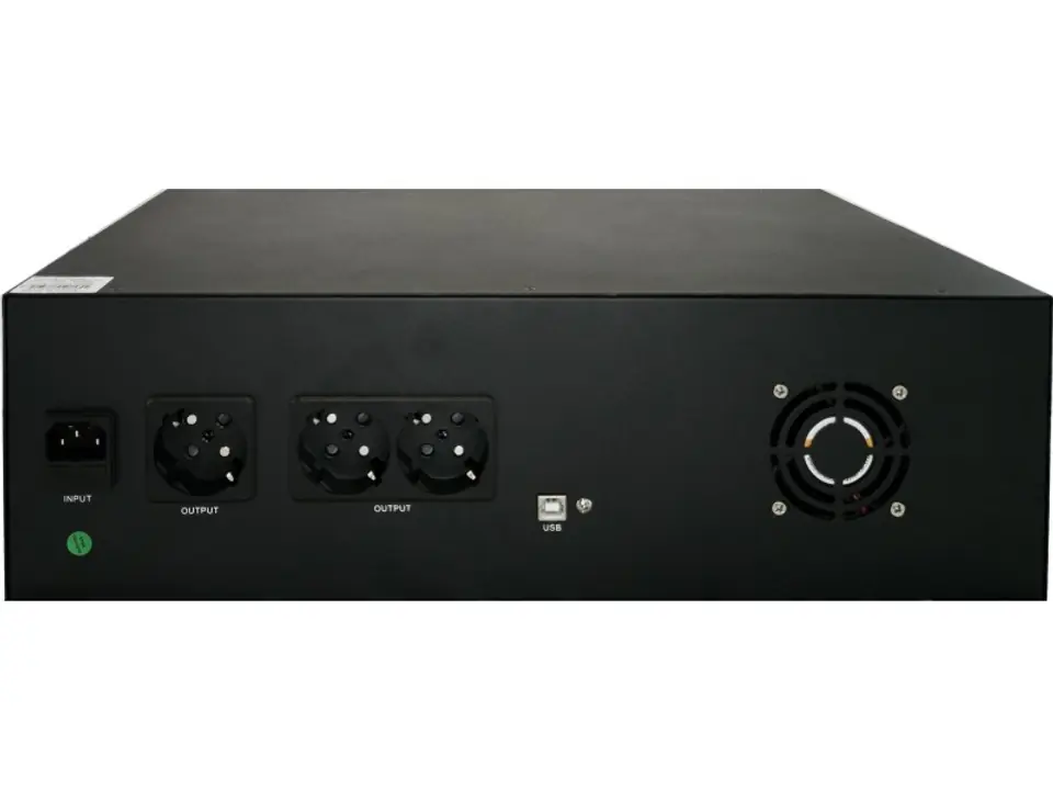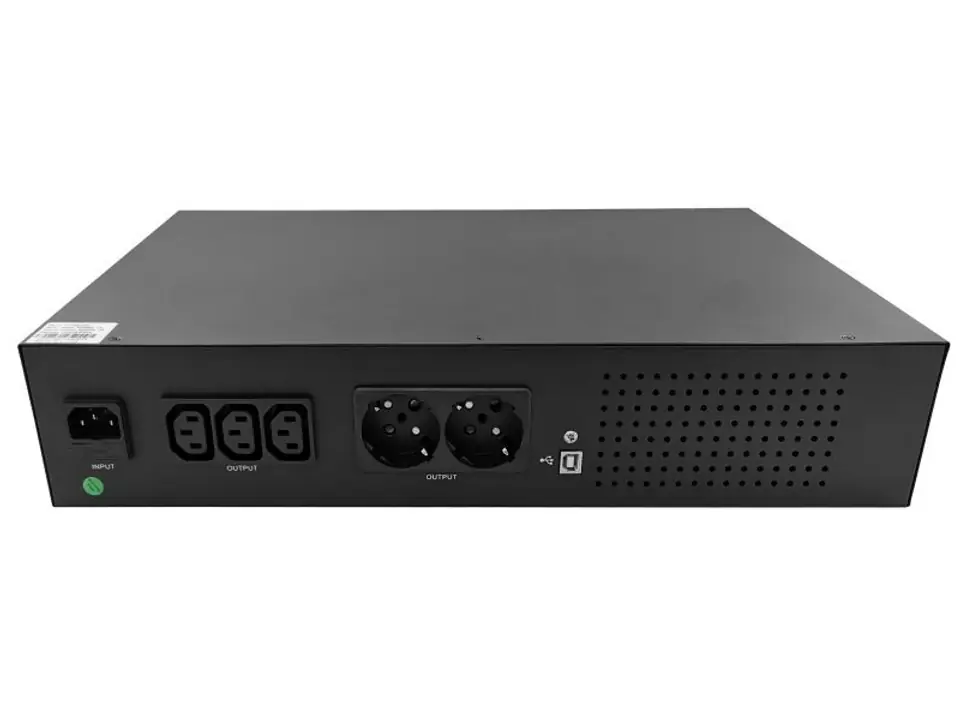 Popularnie zwany UPSem rackowym umożliwia właściwy montaż na belkach typu rack o rozstawie 19". Rozmiar 3U, dokręcane uszy montażowe, niemniej duży ciężar urządzenia wymaga stosowania półki.