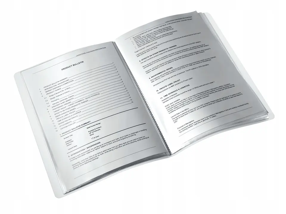 - Zawiera 40 przezroczystych koszulek przymocowanych do grzbietu