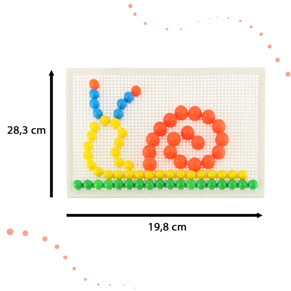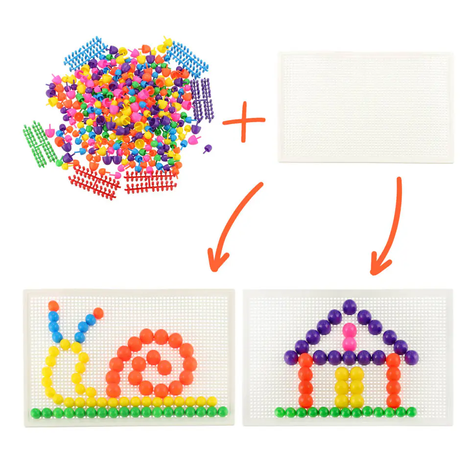 W jej skład wchodzi plastikowa tablica z otworami (28,3 x 19,8 cm) oraz 600 wpinek (w 7 kolorach oraz 3 wielkościach).