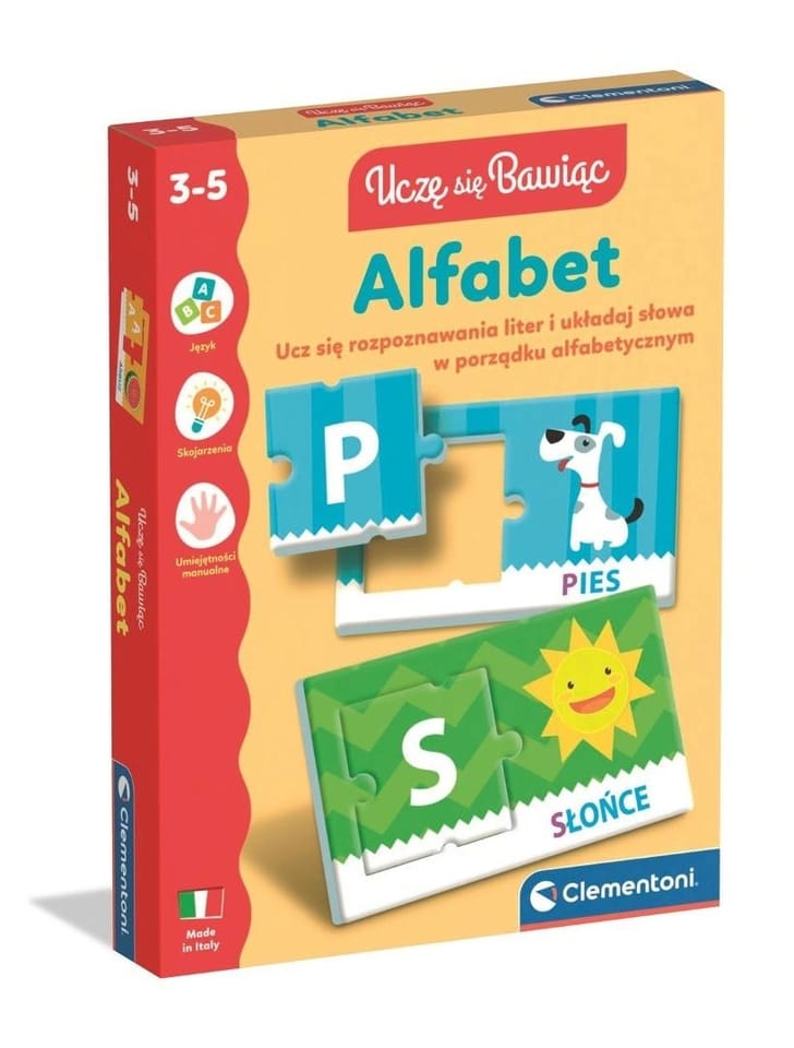 Prosta i zabawna gra edukacyjna złożona z wielu ilustrowanych elementów opracowana specjalnie po to, by uczyć dzieci w wieku od 3 do 5 lat dźwięku liter, alfabetu oraz zapisu pierwszych słów. Wcięcia elementów pozwalają na autokorektę. Dziecko może w ten sposób samodzielnie sprawdzić swoje odpowiedzi. Podróż po świecie alfabetu, którą dziecko może wykonać samodzielnie, sprawdzając swoje umiejętności w grze indywidualnej lub w towarzystwie przyjaciół, albo członków rodziny, wyzywając ich na pojedynek w wariancie gry grupowej. To zabawa, która się nigdy nie kończy.