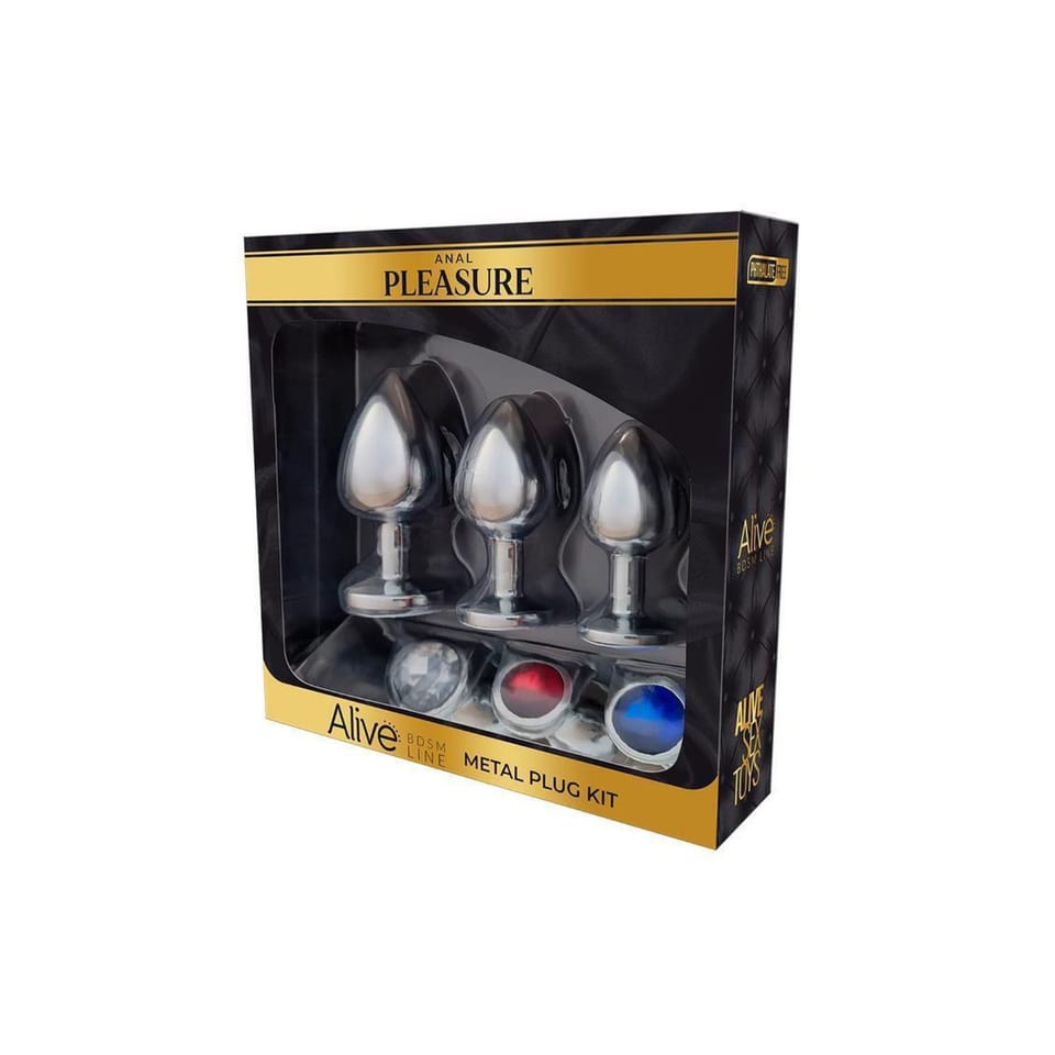Zestaw Anal Pleasure Metal Plug Kit to doskonały wybór dla osób, które chcą wprowadzić do swojej sypialni element biżuterii analnej, łącząc go z intensywnymi doznaniami i delikatnym poczuciem prestiżu.