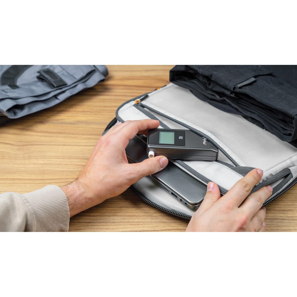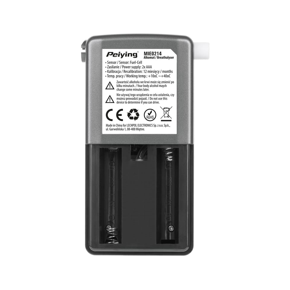 Peiying KT-571 z nowej generacji sensorem elektrochemicznym to bardzo przydatne urządzenie, które przyda Ci się gdy przed Tobą trudna decyzja ? jechać, czy jeszcze nie. Alkomat posiada szereg funkcji, m.in. czujnik przerwania przepływu powietrza, a także dźwiękową sygnalizację potwierdzającą ciągłość wydechu, które gwarantują rzetelny i precyzyjny odczyt z dokładnością do 0,005%. Dodatkową zaletą urządzenia jest możliwość zmiany jednostek pomiarowych na %, ? lub mg/L oraz funkcja zapamiętywania ostatnich pięciu pomiarów. Alkomat posiada także licznik całkowitej ilości wykonanych pomiarów, co jest pomocne do wyliczenia czasu ponownej kalibracji (po 12 miesiącach lub po wykonaniu 200 pomiarów).
