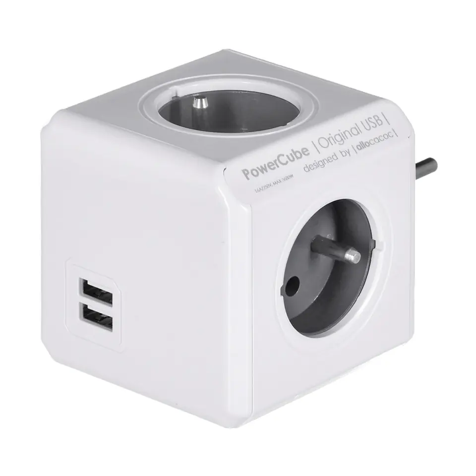 PowerCube Original USB wyposażony jest w cztery gniazdka, ponadto posiada podwójny port USB, przez który można ładować swoje urządzenia bez użycia oryginalnego zasilacza.