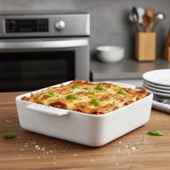 • Kwadratowy kształt: idealny do zapiekanek, lasagne, mięs, warzyw i deserów.