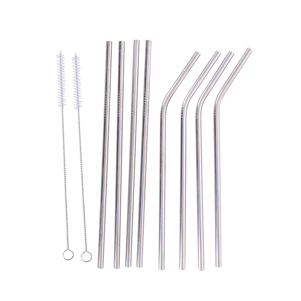 Alpina - ekologiczne słomki metalowe wielokrotnego użytku w zestawie ze szczoteczkami do czyszczenia 8+2 szt.