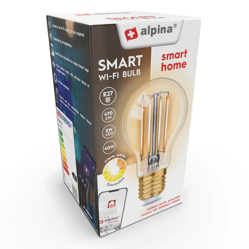Alpina - Inteligentna żarówka Wi-Fi trzonek E27 moc 4,9 W kolor biały ciepły