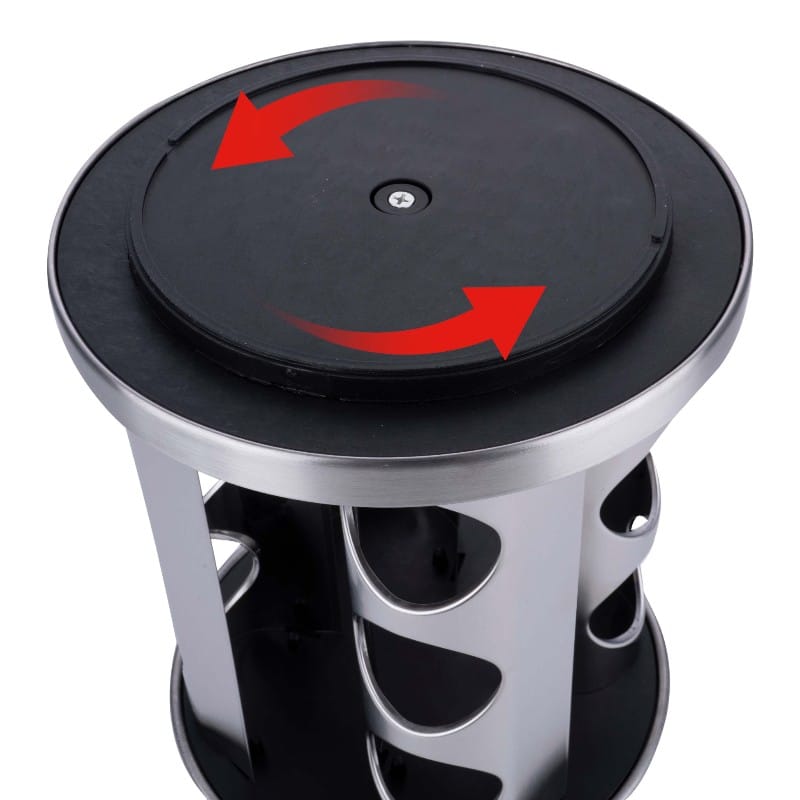 - Obrotowa podstawa 360°: szybki i wygodny dostęp do wszystkich przypraw.