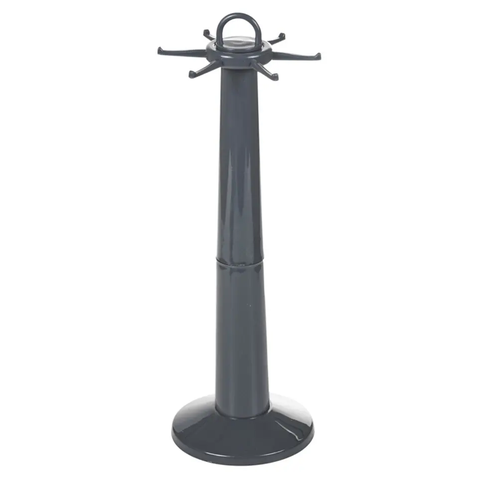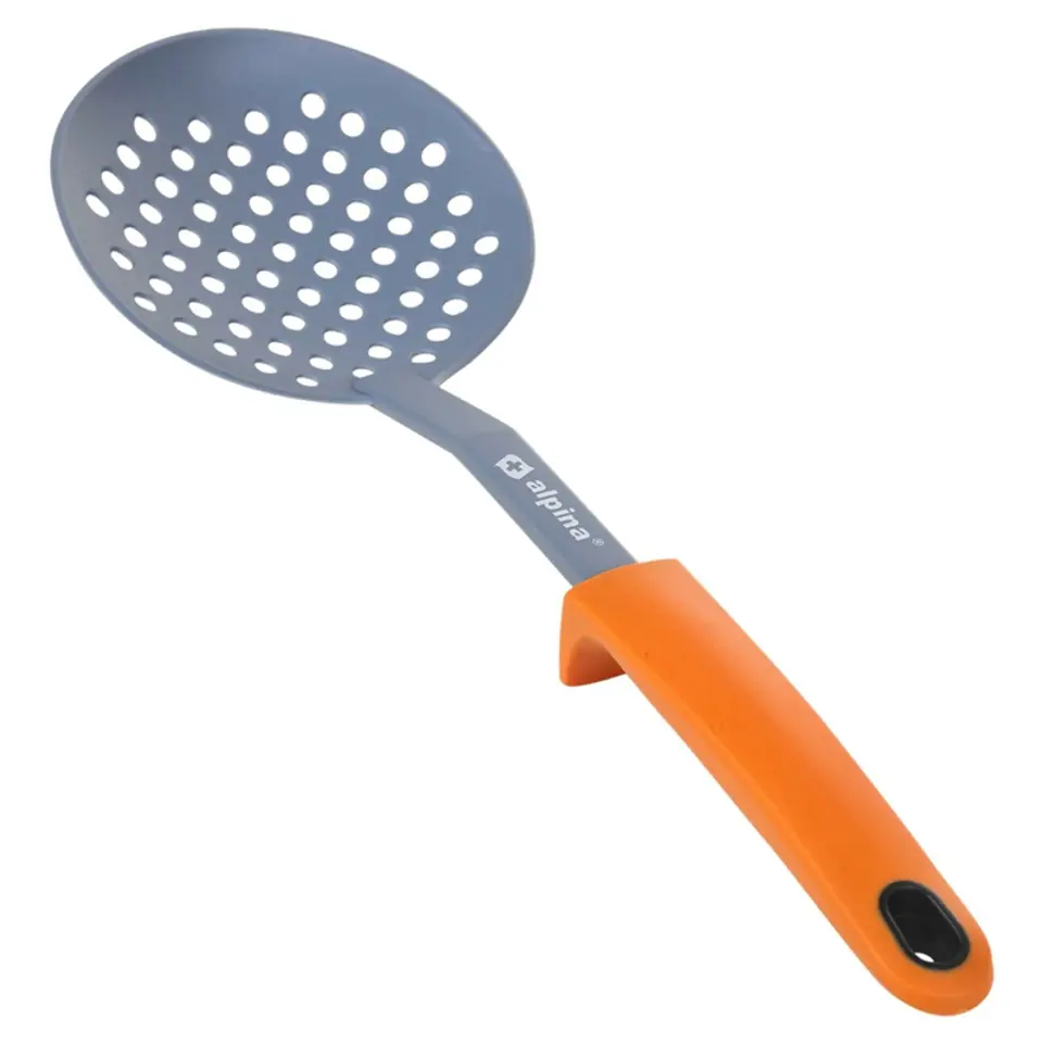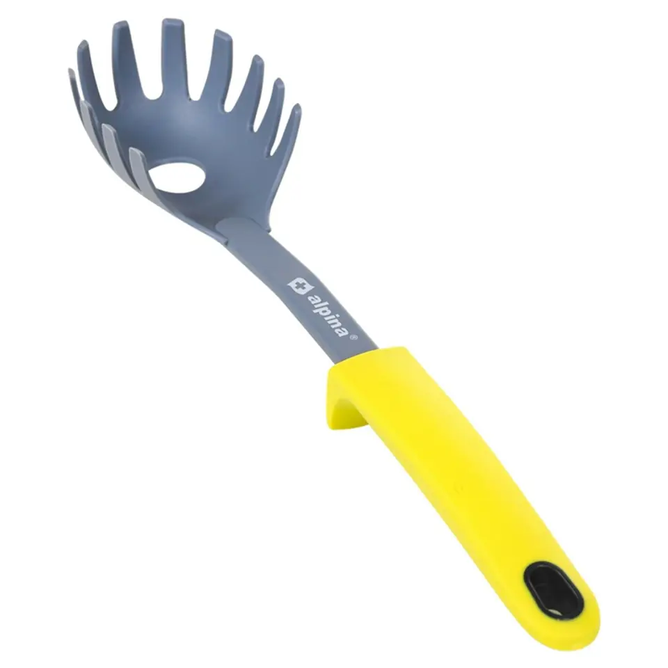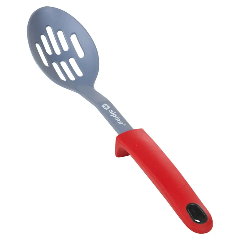 Przybory kuchenne na poręcznym stojaku. Każde z narzędzi ma inny kolor rączkiCechy produktu:· Material: tworzywo sztuczne· Długość narzędzi: 31-33 cm· W zestawie: · łyżka wazowa · łyżka cedzakowa · łyżka · szumówka · łopatka · łyżka do spagetti · stojak karuzela : szerokość 12,7 wysokość 38,5 cm