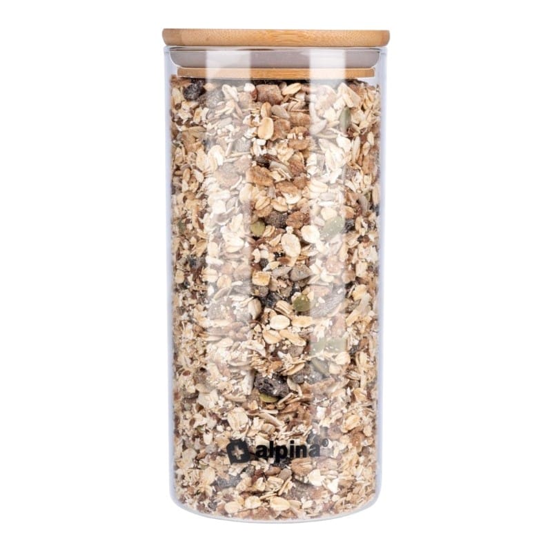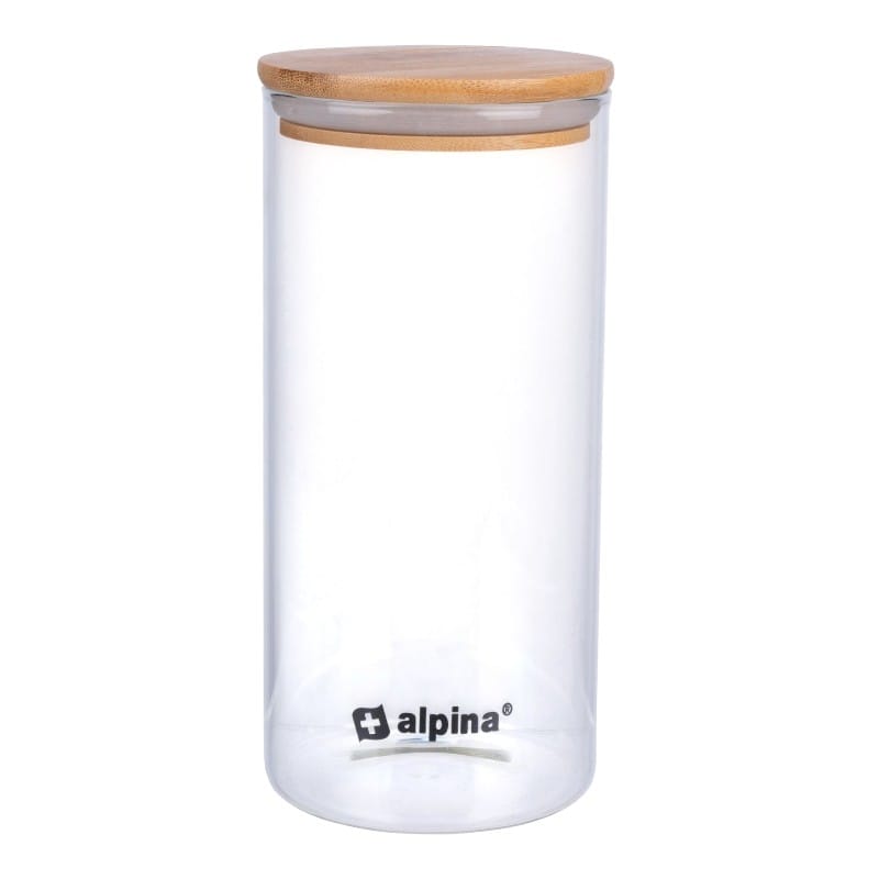 Stylowy i funkcjonalny szklany pojemnik Alpina o pojemności 1250 ml to idealne rozwiązanie do przechowywania różnorodnych produktów spożywczych. Wykonany z trwałego szkła i wyposażony w bambusową pokrywkę z silikonową uszczelką, zapewnia hermetyczne zamknięcie i długotrwałą świeżość żywności. Elegancki design sprawia, że pojemnik świetnie prezentuje się w każdej kuchni, zarówno do codziennego użytku, jak i jako element spiżarni.
