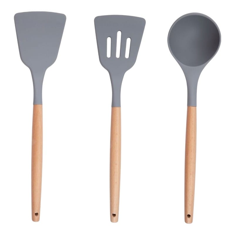 - Materiał: silikon spożywczy + rączki bambusowe – trwałe, higieniczne i odporne na wysoką temperaturę.