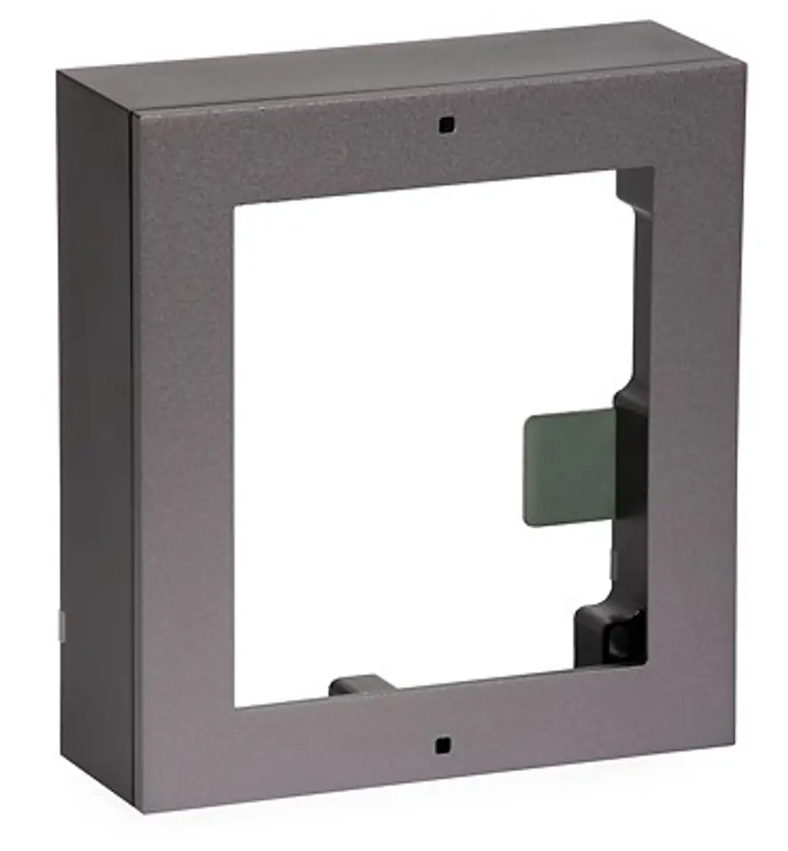 DS-KD-ACW1 to ramka natynkowa dedykowana do montażu systemu wideodomofonowego IP Hikvision drugiej generacji. Wykonana ze stopu aluminium, pozwala na bezpieczny i estetyczny montaż 1 modułu.