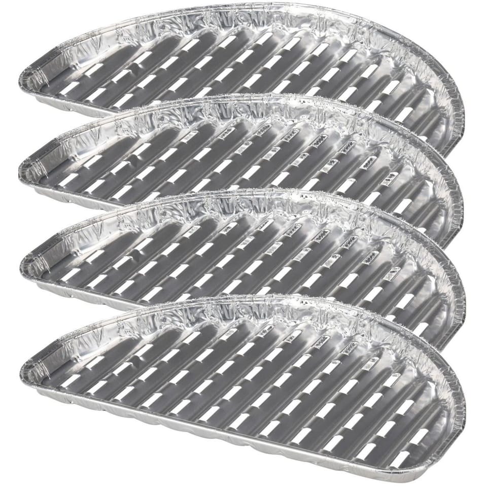 - wykonane z aluminiumw zestawie 4 tacki w kształcie półkolachronią przed spadaniem kawałków do ogniaułatwiają smażenie i przenoszenie mięsalekkie i poręczne