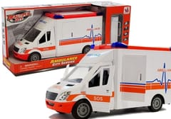 Idealnie odwzorowany ambulans. Auto dopracowane w każdym szczególe, wnętrze wyposażone jest we wszystkie elementy prawdziwego pojazdu takie jak kierownica, deska rozdzielcza, siedzenia. Pojazd posiada dźwięki oraz efekty świetlne, włączane przyciskami umieszczonymi na dachu pojazdu. Auto posiada napęd typu power friction. W pojeździe otwierają się drzwi boczne i tylne oraz posiada zdejmowany dach. Dodatkowo w zestawie znajdują się rozkładane i wyjmowane nosze ratownicze. Autko jest lekkie i ładnie wykonane, zasilane bateriami, które dołączono do zestawu. Pojazd posiada gumowe koła. Rewelacyjna karetka do przewodu pacjentów lub innych zadań podczas akcji ratowniczej.
