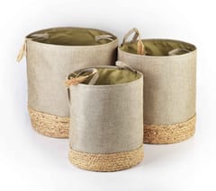 Komplet 3 koszy wykonanych z materiału imitującego fakturą len. Produkt z serii AMPARAO marki MONDEX. Kosze posiadają piękny pas w dolnej części wykonany z hiacyntu wodnego. Kolorystka utrzymana w naturalnych odcieniach beżu. Każdy kosz jest ozdobiony jedną zawieszką z rafii, która dodaje mu niepowtarzalnego uroku. AMPARO Komplet KOSZY WYMIARY :KOSZ L DŁUGOŚĆ 42CM SZEROKOŚĆ 42CM WYSOKOŚĆ 46CMKOSZ M DŁUGOŚĆ 39CM SZEROKOŚĆ 39CM WYSOKOŚĆ 42CMKOSZ S DŁUGOŚĆ 34CM SZEROKOŚĆ 34CM WYSOKOŚĆ 38CM Nie prać, czyścić miejscowo wilgotną ściereczką.