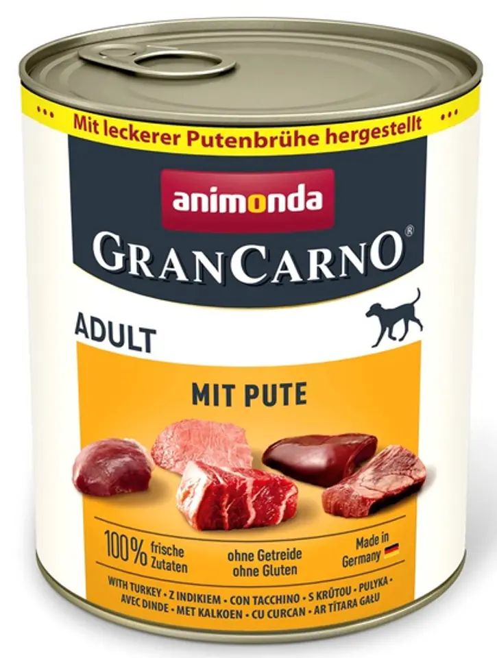 GranCarno Adult to pyszne, zdrowe, zbilansowane żywienie w najlepszym wydaniu dla dorosłych psów w wieku od 1 do 6 lat.Wyselekcjonowane świeże, mięsne składniki gwarantują niezrównany smak, który tak bardzo doceniają psy.GranCarno Adult dostarcza wszystkich niezbędnych składników odżywczych, których potrzebuje dorosły pies.