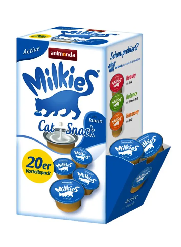 Milkies zawsze smakuje! Można je podawać jako nagrodę lub przysmak, a także jako polewę na codzienną karmę lub jako dodatek do wody pitnej.